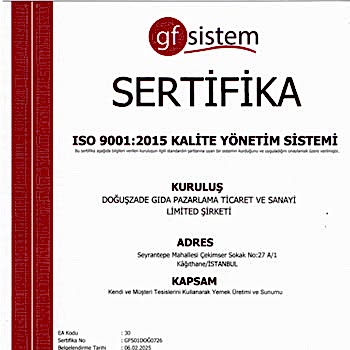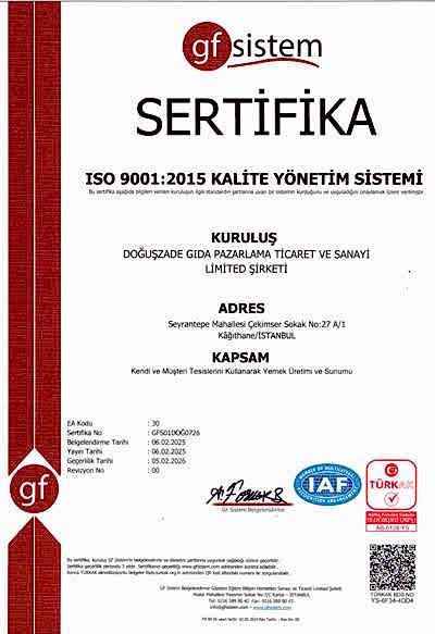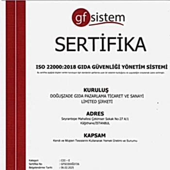 DOĞUŞZADE GIDA PAZARLAMA TİCARET VE SANAYİ LİMİTED ŞİRKETİ olarak faaliyetlerimizi sürdürdüğümüz Kendi ve Müşteri Tesislerini Kullanarak Yemek Üretimi ve Sunumu ile ilgili tüm üretim alanlarında, yüksek kaliteli, lezzetli, sağlıklı ve güvenilir ürünleri gelişmiş teknolojileri kullanarak üretirken uymayı taahhüt ettiğimiz kalite ve gıda güvenliği politikamız;